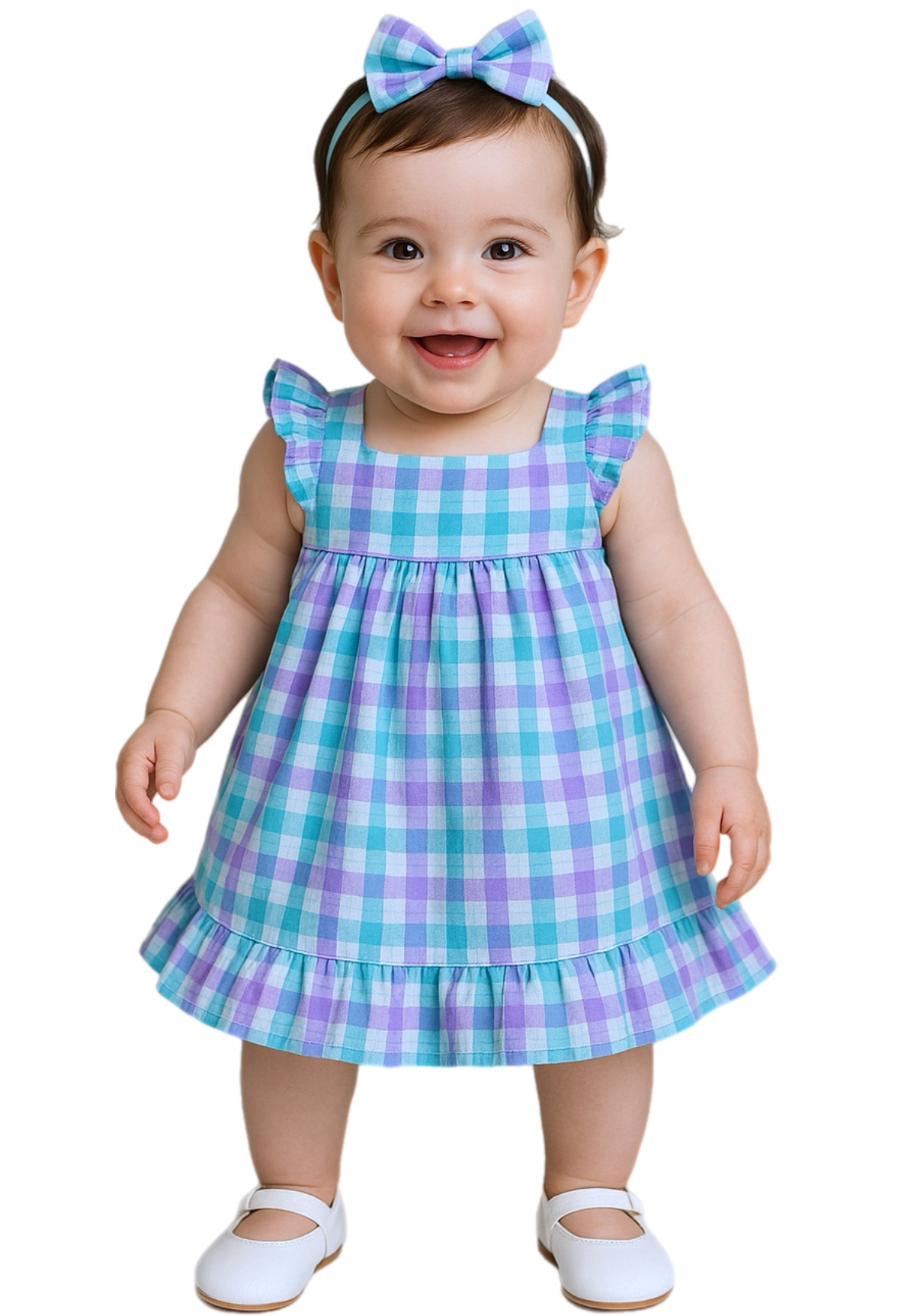 1 Vestido 100% Algodão Xadrez Lilás - Isabela