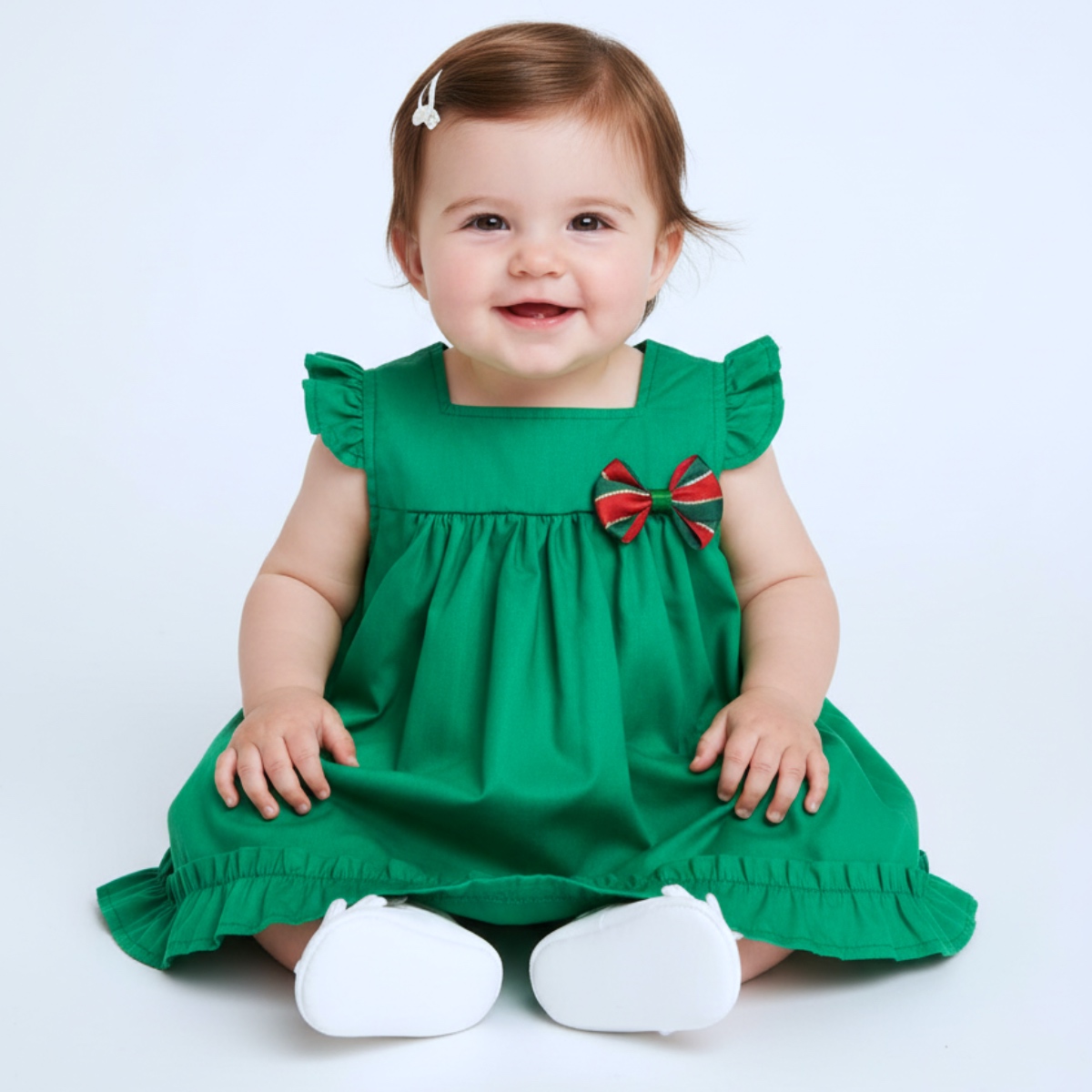 Com o Vestido Verde Natalino, sua pequena vai brilhar como uma verdadeira fashionista!