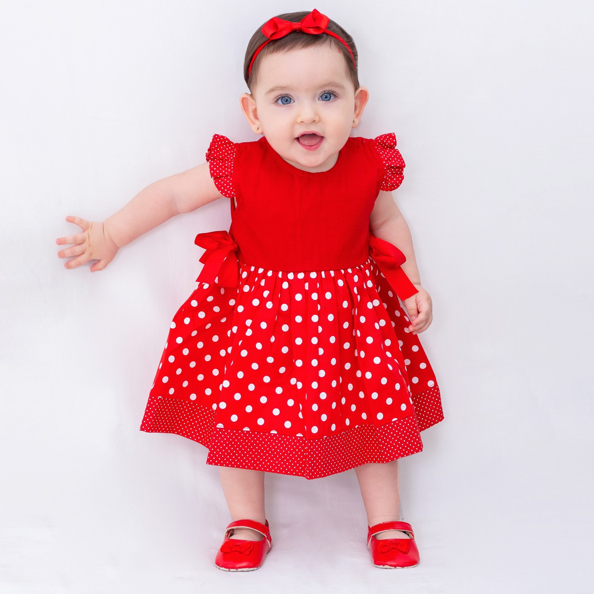 Vestido de Bebê Poá Vermelho 100% Algodão de altíssima qualidade